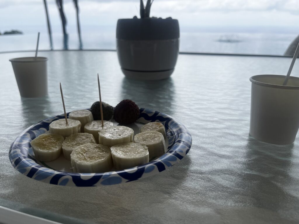 農園は斜面になっていて、フルーツやコーヒーの木を見ながら坂を下っていく感じです。自由に収穫して良いのですが、私たちは収穫できませんでした。でも下の売店まで行くと、無料のコーヒー試飲とフルーツ(バナナとライチ)をいただけました🍌